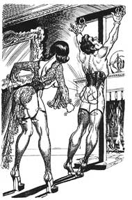 Eliot Dunlap's life changed the day he moved into a plush studio apartment. That night he awoke to the sound of seemingly ghostly and disembodied groans, whimpers of such searing pain that he wondered if it was his imagination playing tricks on him. But as he was to discover, it was not his imagination, but his upstairs neighbors. Amanda Butler and Candy Hawkins, who were responsible for the fiendish sounds of bondage, discipline and emasculating, pain. These two man-eating dominatrices soon enough lure him into their snare of deceit and sadistic punishment. Eliot is their hapless victim, led on by the promise of sexuality. And though he is able to consummate his lusts with all and every conceivable form of sexual activity, he is also treated to abuse and degradation the likes of which defies description.