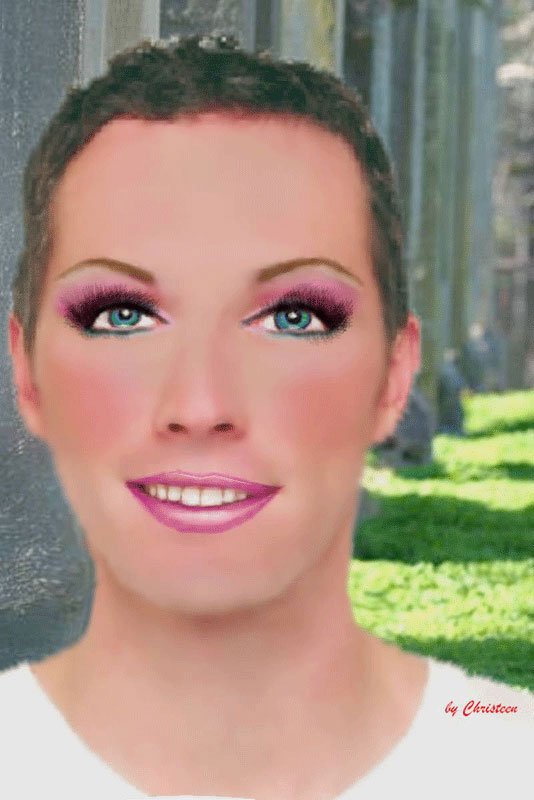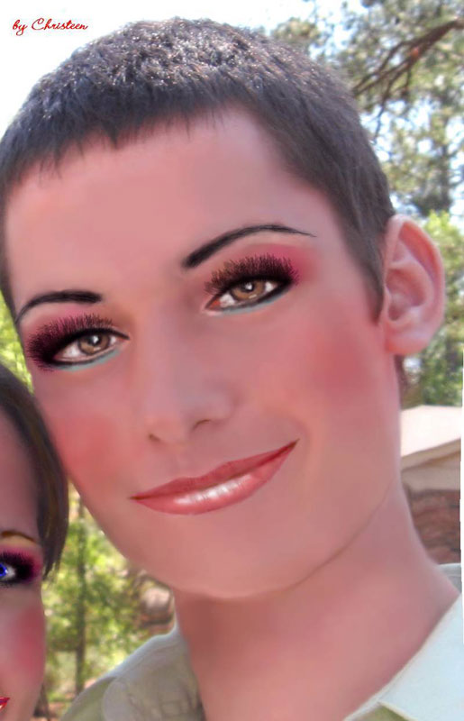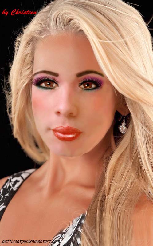 Dear Christeen viewers, If you would like me to transform you into a beautiful woman similar to those you see here please send your largest, highest quality headshot or portrait to carolejeanppa@hotmail.com . I will transform only teens and college age males. Unfortunately I can’t do much with low quality snapshots, or those with hair covering part of the face, or with beards or glasses. Your transformations will be my decision and special requests will not be considered. Please be aware that I might use your face in future art by Christeen.